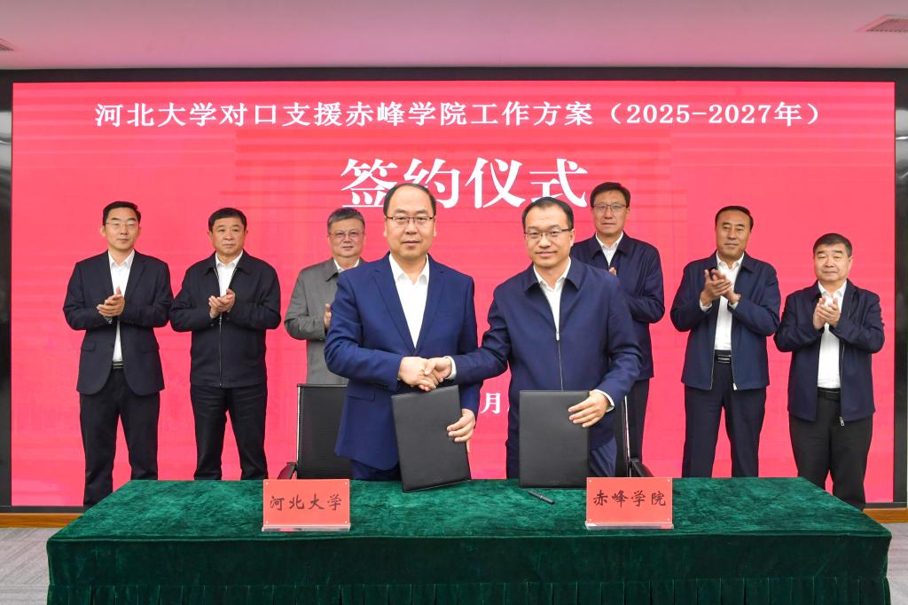 4月29日,河北大学对口支援赤峰学院工作方案签署仪式在河北大学举行,党委书记刘兵、赤峰学院党委书记孟和巴特尔出席仪式并致辞。校长孟庆瑜、赤峰学院校长季祥代表双方签署方案。学校党委常委、副校长王川,赤峰学院党委委员、副校长徐振军,党委委员、副校长杨占军出席仪式,仪式由学校党委副书记徐建民主持。