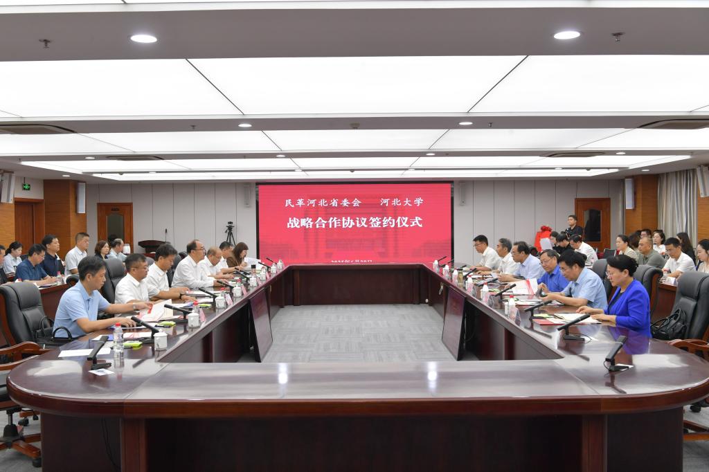 孟庆瑜简要介绍了河北大学的基本情况、办学特色及建设成效。他表示,共建研究中心是河北大学服务谱写中国式现代化建设河北篇章的重要抓手,期待与民革河北省委会携手并进,重点围绕打造中国特色高端智库、学习交流合作、人才供给三个方面开展工作,共同开创政校合作新模式,为加快建设经济强省、美丽河北提供有力的智力支撑。