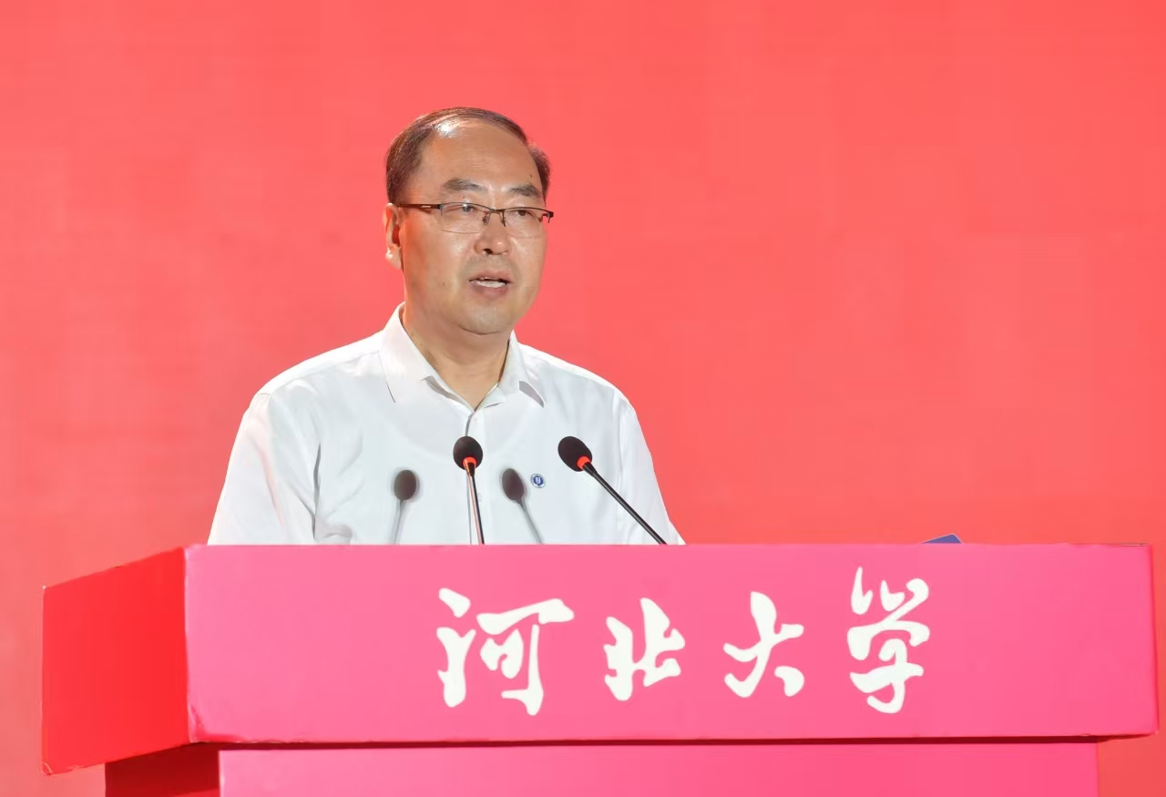 河北大学校长孟庆瑜代表学校向2025级全体新生表示热烈的祝贺和诚挚的欢迎。他向新生们介绍了河北大学的办学历史和发展现状,指出学校在百年发展历程中始终砥砺前行、弦歌不辍,凝练形成了代代相传、生生不息、历久弥新的河大精神:教育报国、育人兴邦始终是河大精神的爱国底色;追求真理、崇学向善始终是河大精神的鲜明品格;守正创新、追求卓越始终是河大精神的时代担当。他希望全体新生以习近平新时代中国特色社会主义思想为引领,从河大精神中汲取奋进力量,在学校争创“双一流”的征程中点燃激情,做到坚定理想信念,涵养家国情怀,在投身中国式现代化建设的火热实践中成就自己的事业与梦想;勤学善思笃行,勇于探索求知,拓展学习的广度、延伸学习的深度;塑造健全身心,德智体美劳全面发展,让自己的人生道路行稳致远;树牢规则意识,做到德法兼修,将法律法规和道德伦理作为自己的行为准则;拥抱时代浪潮,追求创新卓越,科学运用人工智能等新技术,用奋斗擦亮青春底色,用行动践行使命担当,努力成长为堪当强国建设、民族复兴大任的栋梁之才。