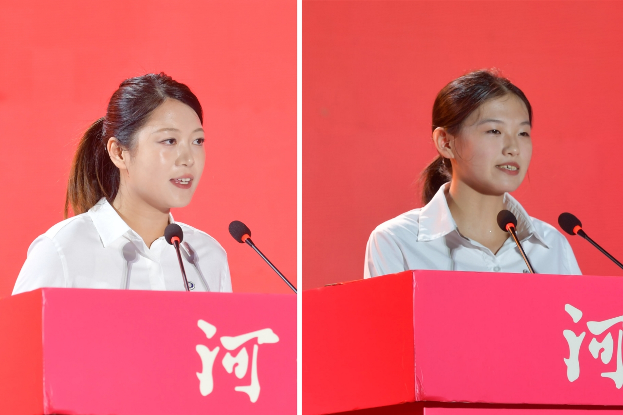 在校生代表,公共卫生学院卫生检验与检疫专业2022级本科生郑宇航、文学院中国语言文学专业2024级博士生关屹在发言中表示,要将个人的成长熔铸于时代的需要,让青春在奋斗中淬炼成钢。