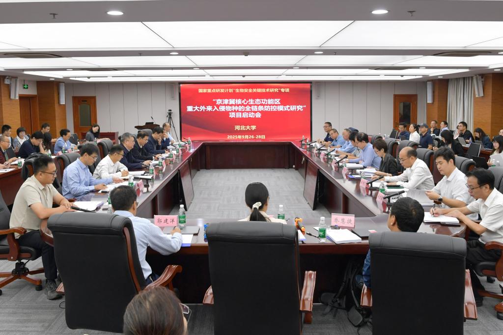 9月27日—28日,由生命科学学院陈立教授担任项目负责人的国家重点研发计划“生物安全关键技术研究”重点专项“京津冀核心生态功能区重大外来入侵物种的全链条防控模式研究”的启动会暨实施方案论证会在河北大学召开。中国生物技术发展中心、河北省科学技术厅、河北省教育厅有关处室负责人,项目咨询专家组成员、项目组主要成员和参研单位代表等60余人参加会议。学校党委书记刘兵出席会议并致辞。会议由学校党委常委、副校长王川主持。