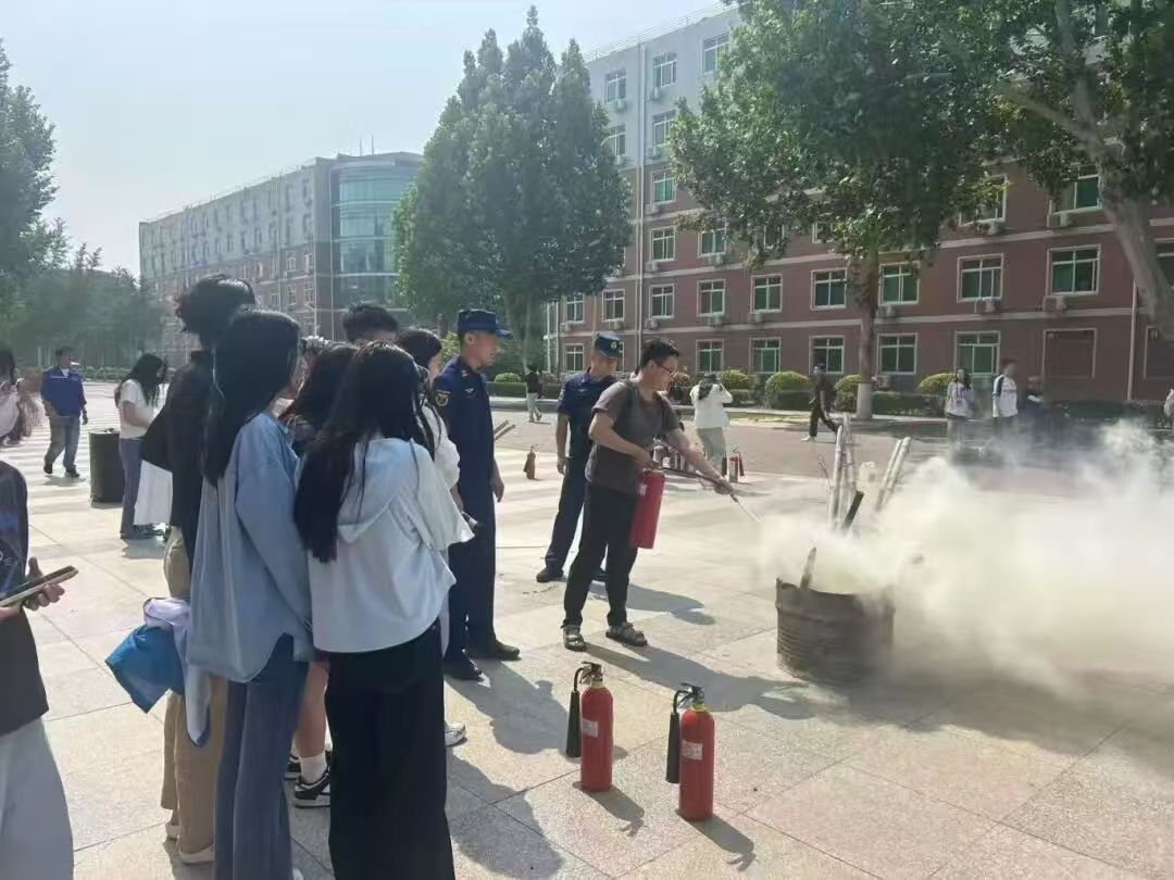 腾飞路消防救援站消防员给师生培训消防安全知识,消防员围绕河北省消防条例中安全责任、火灾预防等相关内容,进行了认真细致的讲解。接着河北大学安全工作处李昊辰老师详细讲解了灭火器“提、拔、握、压”四步操作要领,并强调面对火情要保持冷静、避免吸入有毒烟雾。随后,师生使用灭火器进行灭火实操演练,亲身体验灭火过程,进一步深化理论知识,提升了应急能力。
