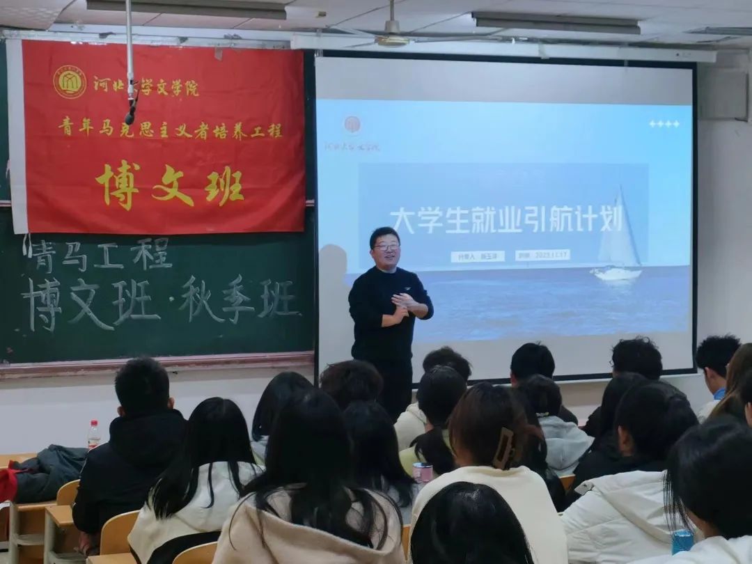 为助力低年级学生树立就业意识,做好学业规划,高年级学生了解就业信息、就业形式,理性择业就业,2023年11月30日,文学院在A5-101举办大学生就业引航计划分享会,我院本期青马班学员以及各班团学骨干参加此次活...