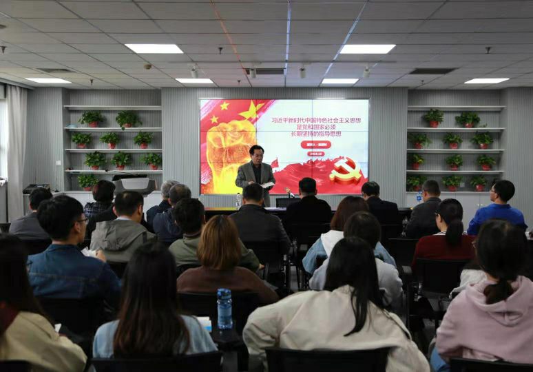 为深入学习贯彻习近平新时代中国特色社会主义思想,着力推进“不忘初心、牢记使命”主题教育,2019年10月24日,文学院在新校区B2——6楼会议室举办专题党课,院党委书记张朋钊以“习近平新时代中国特色社会主义思...