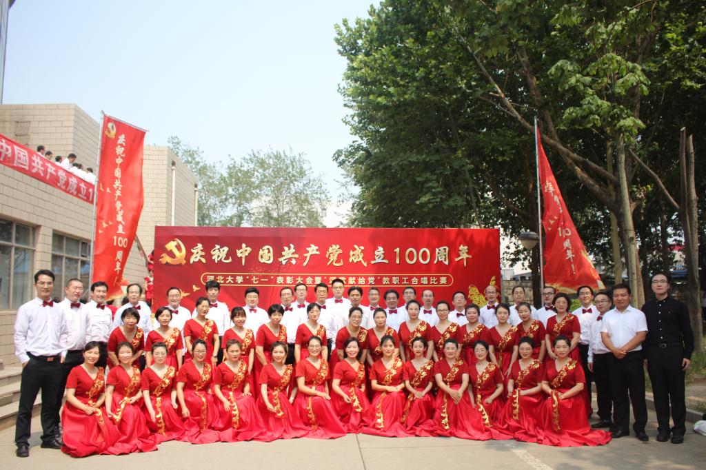 为庆祝建党百年华诞,6月25日河北大学举办“颂歌献给党”教职工合唱比赛。文学院教职工代表队选唱的是电影《闪闪的红星》中的经典歌曲《红星歌》,以其雄壮又带有抒情性的合唱赢得评委和观众认可,并荣获三等奖。...